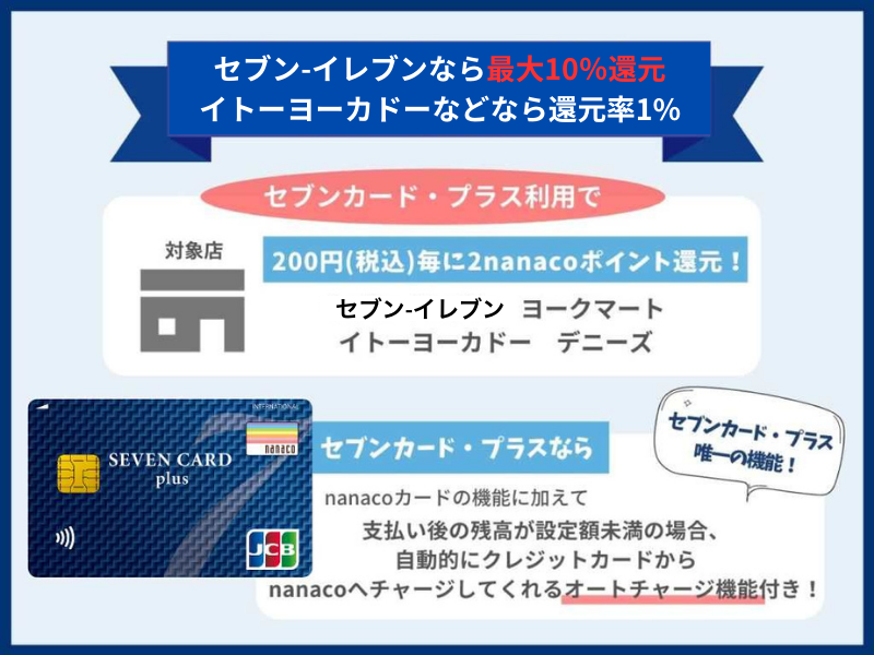 セブンカード・プラスは、数あるクレジットカードの中で唯一nanacoにオートチャージができるクレジットカードです。