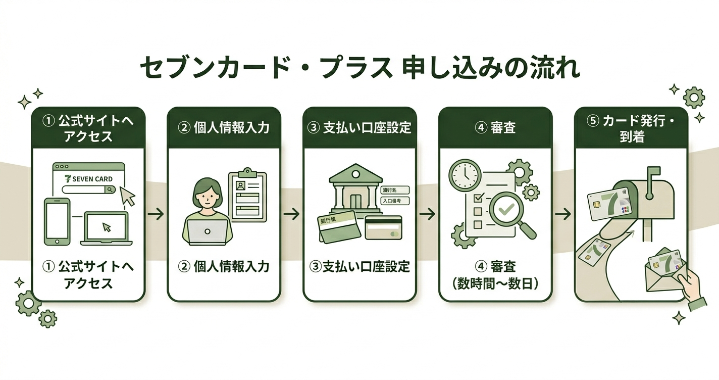 そこでこの記事では、セブンカード・プラスの申し込みの流れと発行までの日数を、初心者向けに分かりやすく解説します。
